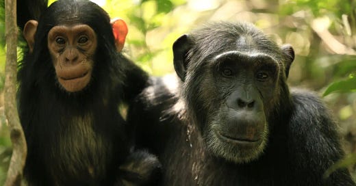 “Hey, are we not gonna talk about how we were literally stuffing our faces with fucking monkey like fifteen minutes ago?” the look on one of the chimps’ face seemed to say as he watched his chimp buddies gorge themselves on wild berries. But the other chimps didn’t even seem to notice.